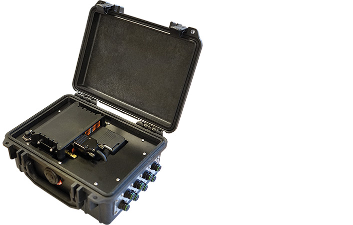 Data logger mounted in a waterproof case. Waterproof connectors mounted to custom stainless steel panels and fully sealed. Supplied with custom quick release bracket.