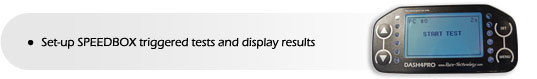 DASH4PRO used as part of a Race Technology system, feeding back data and test results. It can be used to set up triggered tests on the SPEEDBOX products as well as reviewing previous test results and showing live data