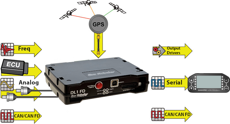 Operation is similar to the DL1 CLUB, you simply connect power, put the GPS antenna on the vehicle roof and you are ready to log data. For more advanced applications, the DL1 FD, it is capable of being used for anything you could reasonably want of a data logging system: