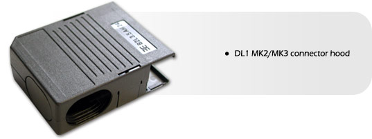 A clip on hood is available for the DL1 CLUB/Mk2/Mk3 connector blocks. This hood clips securely to the connector block, covers the individual wire connections and allows for some strain relief. Cable can either exit straight or at 90 degrees. The hoods include areas for cable ties to fasten the cables as they exit.