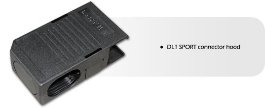 A clip on hood is available for the DL1 SPORT connector block. This hood clips securely to the connector block, covers the individual wire connections and allows for some strain relief. Cable can either exit straight or at 90 degrees. The hoods include areas for cable ties to fasten the cables as they exit.