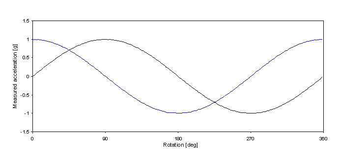 X and Y axis accelerometer outputs during calibration