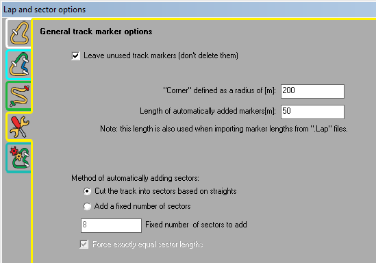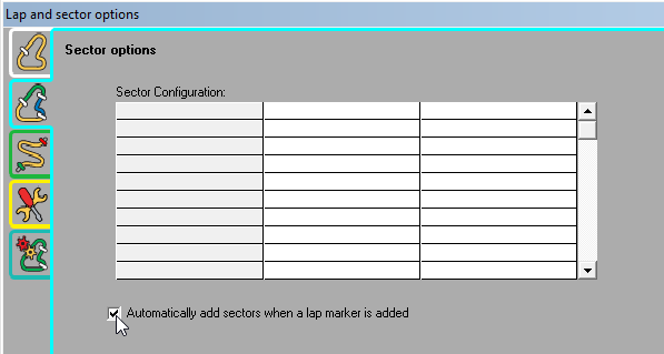 tab. Enable "Automatically add sectors when a lap marker is added" if not enabled and press "Ok".