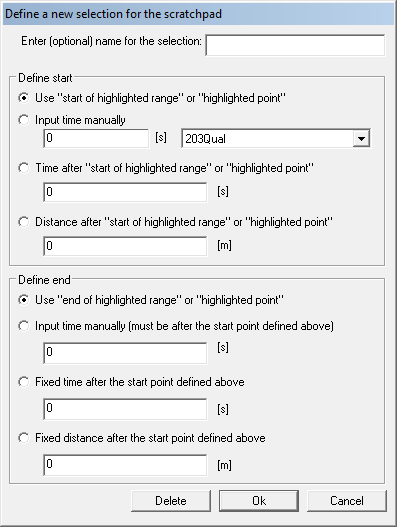 Ensure that the appropriate boxes are checked, so that the start and end of the highlighted area are used to define the selection. When you are satisfied, press OK. This will add a new entry to the selection scratchpad table.