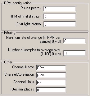 Because there are a few extra options associated with setting up the RPM compared with other variables this feature has its own configuration screen, as shown below: