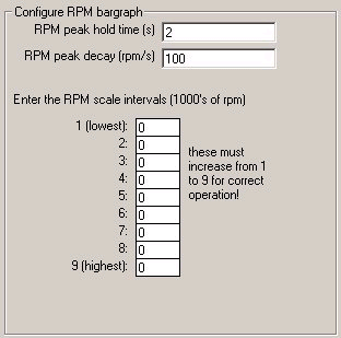 The 2nd part of the RPM configuration screen allows you to set up the RPM bar graph display.