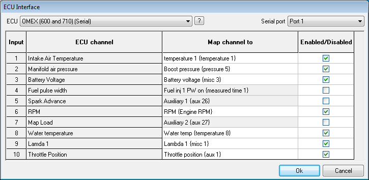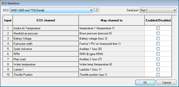 Select the channels that you wish to decode and log from the ECU, the information available from ECUs differ between ECU manufacturers