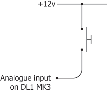 The DL1 MK3/CLUB can use two of the analogue input channels to control the stop / start of data logging and also adding markers. To operate these inputs, a momentary switch should be connected between the analogue input and either the main 12v supply or one of the two 5v reference outputs.