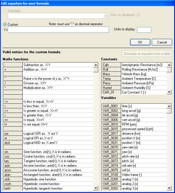 This is a very powerful feature on the DL1 CLUB which effectively enables you to create user defined variables by combining existing channels of data.