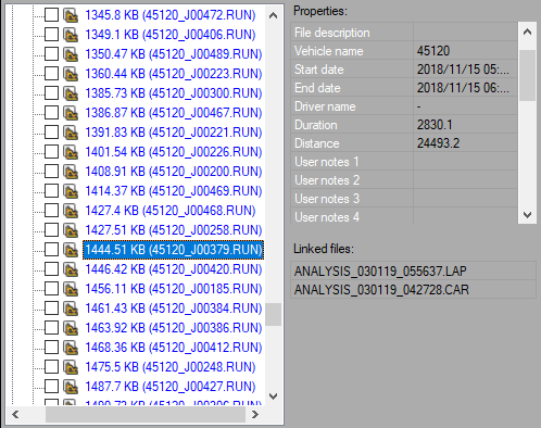To view properties of a RUN file, simply left click on the file name in the file tree. This will display a list of properties in the Properties area in the right side.