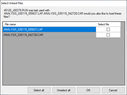 When downloading a RUN file that has other files linked to it, you will be promped with this dialog to select the linked files: