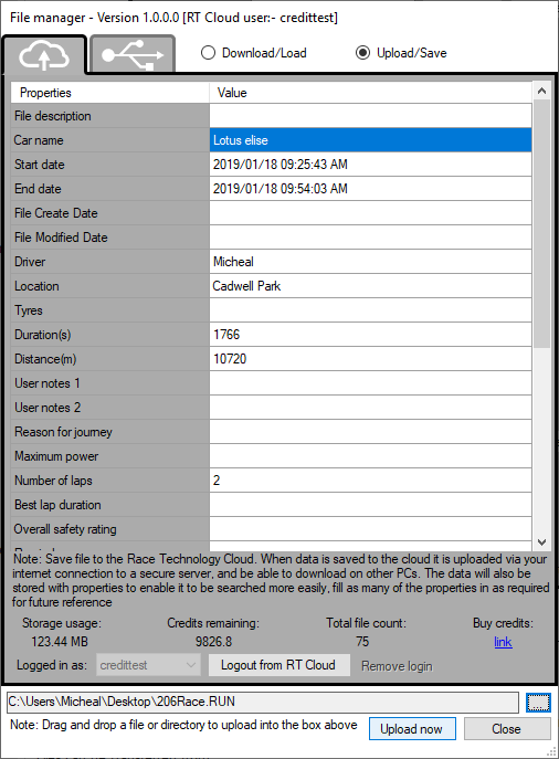 Then enter property values for that file and click "Upload now" button to upload that file to the cloud.