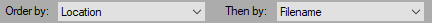 These drop downs contain file properties. When you select a file property from the first drop down named "Order by", all files are grouped in to folders named with different values of the selected file property. For example if you select "Location" for "Order by" drop down, all files will show up in seperate directories for different locations as below.