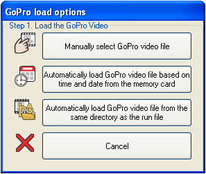- If the GoPro SD card is currently attached to the PC, then you can automatically load it. This compares the time and data from the data file, with the times and dates on the video files on the memory card and selects the best match. This works very well once the time and dates of the GoPro are known.