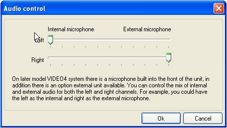 The audio is setup from the “VIDEO4 Configuration Tool” program, from the Configuration -> Audio menu.
