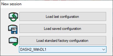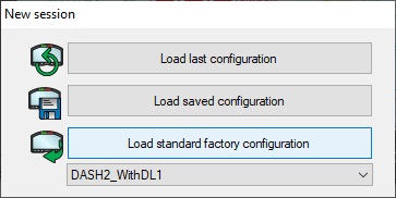 In the New session window that appears, use the drop down box to select DASH2_WithDL1 then click Load standard factory configuration: