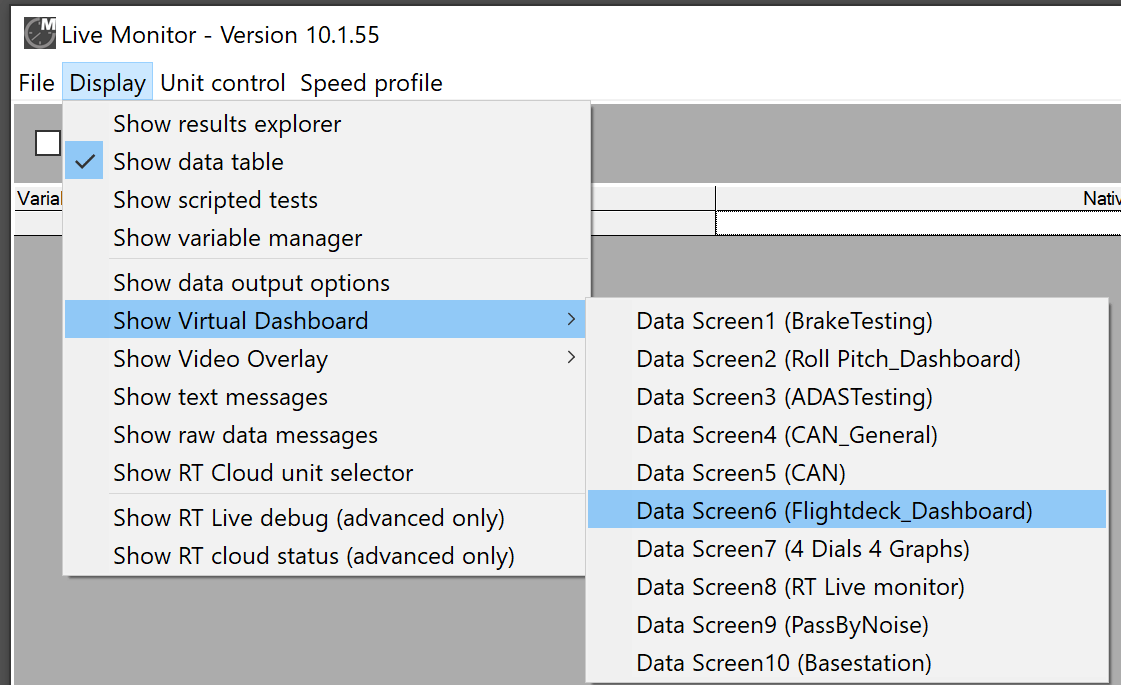 Load a suitable virtual dashboard from the list of dashboards: