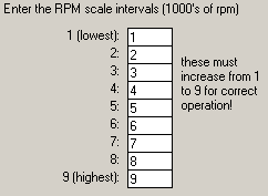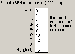 step 3: On the right hand side of the window, will be displayed the RPM scale intervals.