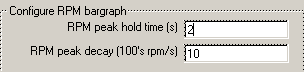 On the DASH2 screen, you may choose to have a small line showing you the level at which your RPM peaked. This line will "decay" down the scale after a period of time. By using this tool, you may choose the amount of time that you wish the line to be displayed at the peak level for, and the speed that you wish it to decay.