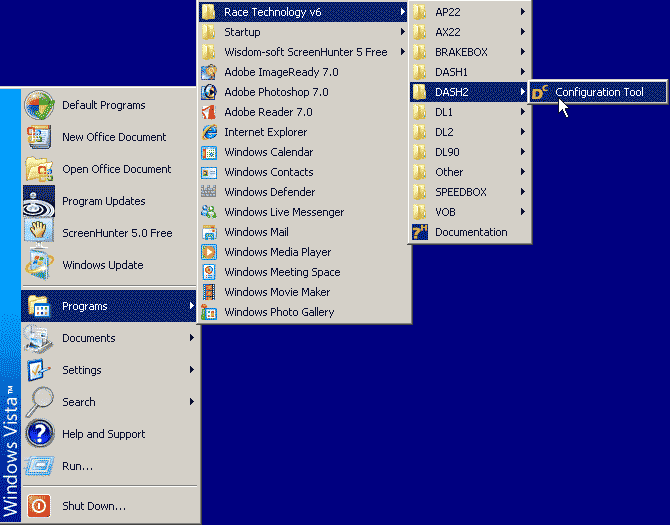 step 1: Firstly, enter the start menu and navigate your way to the DASH2 configuration tool, as shown below: