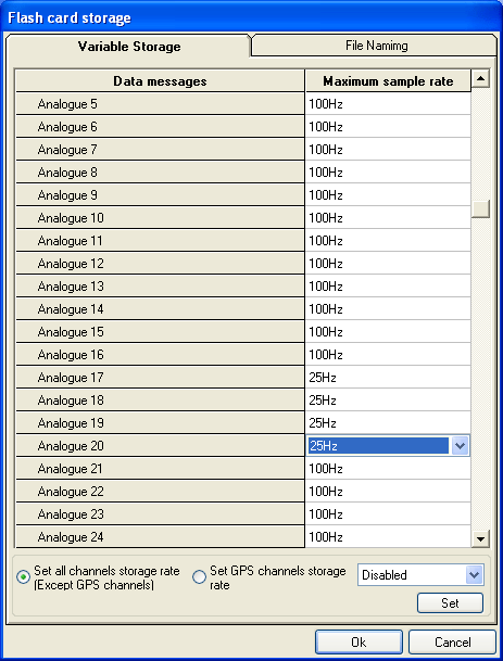 2. Set the storage rate for the data on the Flash Card Storage tab.