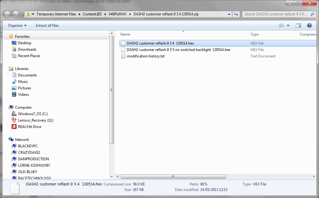 Step 5: Download the latest reflash file for the DASH2 (9.3.4) from the Race Technology website, rename the file to: DASH.hex and open this file when prompted.