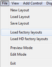 To access the example layout directories use the menu items - "File -> Load factory layouts" and "File -> Load HD factory layouts"