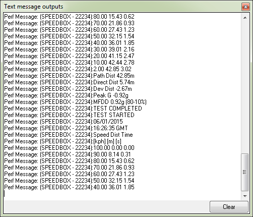 Selecting this brings up a separate window where any text messages will be displayed. The text messages include warnings, errors and performance messages from the SPEEDBOX range of products.