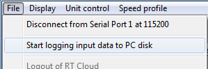 - To start streaming, Click the menu item File -> Start logging input data to PC disk