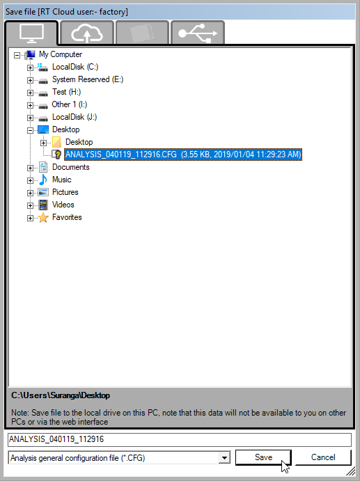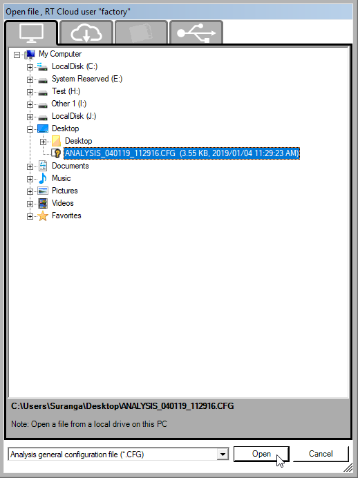 Select the file you want to load by left clicking on the file and click on "Open" to load the general options settings from that file to the analysis program.