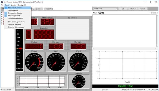 Click on Live Monitor. When the Live Monitor software starts it will detect the available serial ports, scripts, test results and configuration data. Select the options below and adjust the windows it fit the screen.