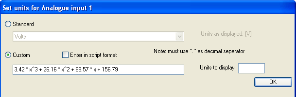 step 4: Make sure that you have made a note of the formula that has been created for the sensor in the DASH2 configuration software (See the section on connecting your own sensor to the DASH2 for information on how to do this).