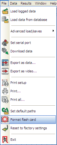 step 1: Enter the "File" menu in the top, left hand, corner of the screen, and select the "Format Flash Card" option.