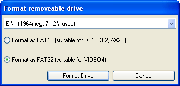 step 2: This will bring up a small window. To format the Flash Card, simply press the "Format Drive" button.