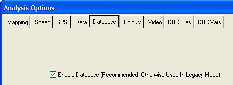 Enable Database: This option is enabled by default. If you disable this option, "Load data from the database" option will be disabled in the "New session" dialogue shown at the start of the Analysis software.