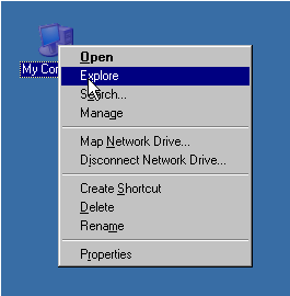 Step #1. Open a windows file explorer, by right clicking on “My computer” and selecting “explore”.