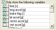 You can also use the Values Table to display the variable data that is applicable to the ranges. When you select a range of data, i.e. a sector from the Lap And Sector Times table, or hold shift and drag a selection on the track map or XY graph, the values table will display up to three options: