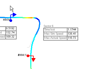 The track map annotations can either be displayed for a sector, or they can be displayed for a track marker position.