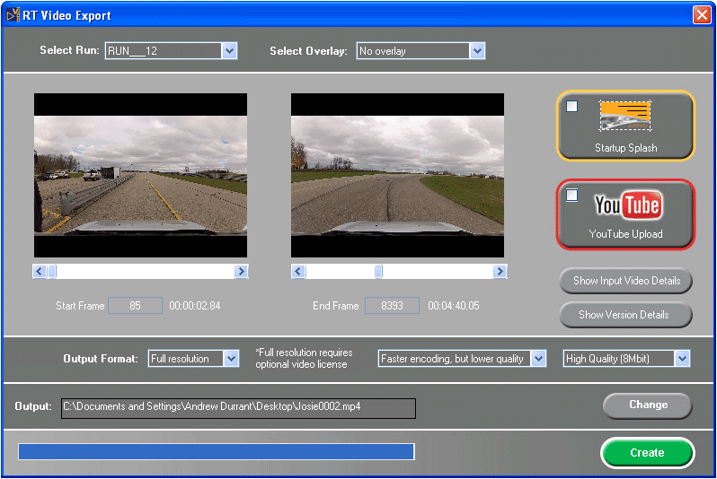 - Select the start and end of the video export using the scroll bars. Note that if you selected some data in Analysis (for example your fastest lap) then the start and end of the video will be automatically selected for you