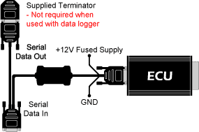 On later hardware the connections where modified so when possible the ECU adapter was powered from the data logger it was connected to. If powering from the data logger was not possible, then it can be powered using the supplied terminator: