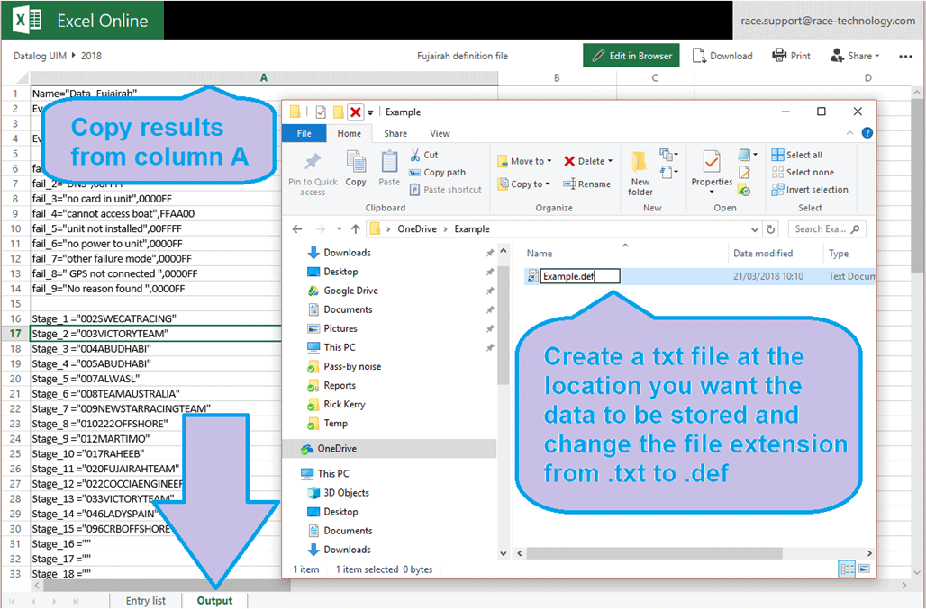Once complete copy the results from the OUTPUT tab into a txt document and rename it. As shown below.