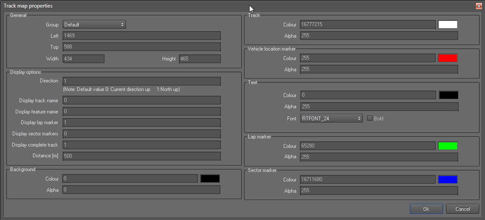 Add a track map control and change its properties as follows: