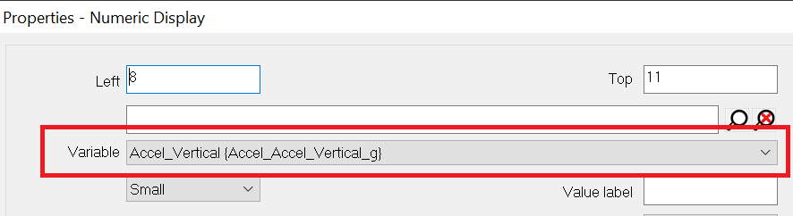 Like other variables, it is possible to drag and drop a CAN variable to a DASH4PRO FD display control such as Numeric display, graph and bar graph. The variable will appear in variable box under properties of each control.