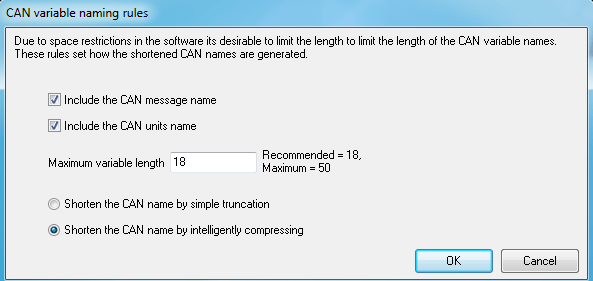 Please note that shortening only applies to display of CAN variables and it does not update any files which stores CAN data.