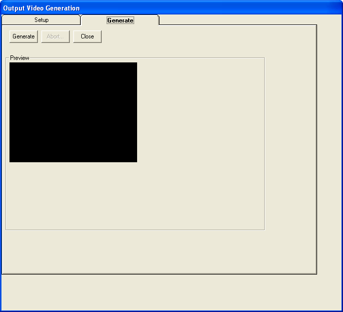 The Output video to file option is very important. If you do not check this box, the Generate button on the Generate tab will only preview what the video output will be! To set up your video, make sure you have done the following: