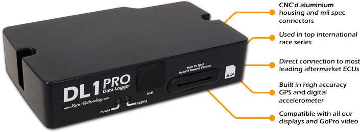 Whether you want a high quality driver and vehicle performance analysis system using GPS, CAN, ECU, accelerometer, frequency, or analogue data - or you want a rugged professional scrutineering system for monitoring professional race series. The DL1 PRO features an IP54 sealed rugged aluminium enclosure for protection against splashed water and dust.