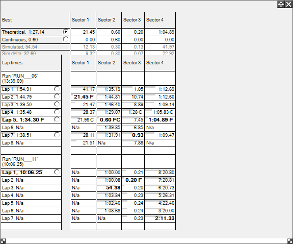 Step 1: Load up both of the sets of logged data that you wish to compare. Two sets of data will now be displayed on the "Lap and Sectors Times" table. Select the data that you wish to compare.