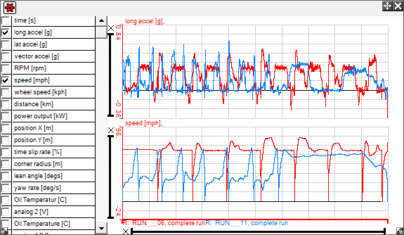 Step 2: Open up a quick graph and select the variables that you wish to compare and the graph will now display the information that you wish to analyse from both sets of logged data.