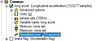 A window will now open up. Type in the smoothing time (in seconds) that you require, and press "OK". (N.B. the smoothing time is the length of the intervals over which the data is smoothed. For example, if the smoothing time is 0.5 seconds, then the data will be smoothed by taking an average reading from every 0.5 second interval).