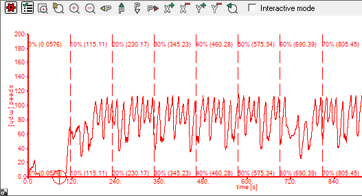 button. When you open a new graph, it will initially display the speed against time for the whole of the first run you loaded, with any laps or sectors you have highlighted in the Laps And Sector Times table highlighted on the trace. If no .RUN files are loaded, then no data will be displayed.